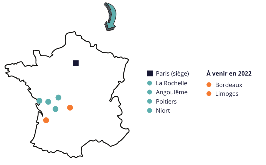 Nos équipes pluridisciplinaires sont réparties dans plusieurs villes en Ile-de-France et dans la région du Sud-Ouest